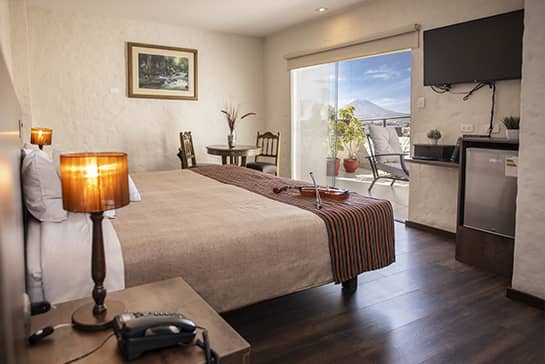 Para los amantes de la tranquilidad y la buena vista, esta amplia habitación será su preferida. Podrá disfrutar de un maravilloso paisaje del Tambo Ruelas, la ciudad y de los volcanes que la rodean.